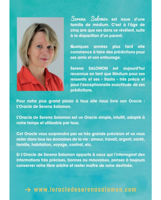 Les ÉDITIONS S.D.B sont au top humainement parlant. Leur bienveillance (créatrice et éditeur) et le plaisir de partager leurs grandes capacités à travers ce qu’ils proposent ne font qu’ajouter à la qualité de leur travail 🙏 Cela se ressent notamment sur l’Oracle de Serena Salomon qui se veut accessible et intuitif pour être un outil puissant et disponible au nombre de plus en plus grandissant de personnes qui s’ ouvrent à leurs capacités.